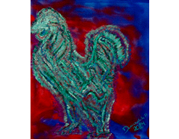 " Denisse De La Parra: Un ser lleno de arte, de qué expresar, de qué dar, en su expresión pictórica, escultórica, gráfica y de textil muestra un interés hacia el potencial de la figura mística del gallo manifestándola en diversas técnicas. A través de la experimentación de varias técnicas mixtas, con distintos procesos de ejecución, en sus esculturas. Un ser evolucionando, en búsqueda de la mejor expresión, tanto como artista así como ser humano, la diversidad de técnicas en su arte , dan como evolución a la diversidad de logros personales, un ser en busca de la plenitud evolutiva, personal y artística. Felicidades por compartirnos tu obra, tu amistad y tu alma!. "