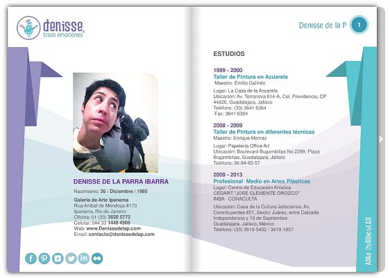 " Si me permiten, les contaré quién es Dennise de la P: Una explosión de colores generada por la transformación de un gallo, que como oruga transmuta su ADN a mariposa: Siempre estuvo en su esencia. Eacute;ste hermoso gallo que posee plumas radiantes e impactantes, pinta de colores la fuerza imponente, que emana desde lo más profundo de su existencia; y así con este sublime ímpetu, este gallo teje y comparte sus pensamientos, sus emociones y un poco más a través del arte. A lo largo de su Carrera ha tocado puntos clave para difundir por medio de sus ojos lo que ofrece este mundo. Desde la pintura y textiles, hasta las letras expresadas como una periodista. Es por ello que debes de seguir la trayectoria de este increíble gallo que hará kikiriquí en tu piel! "