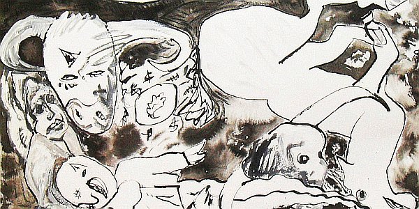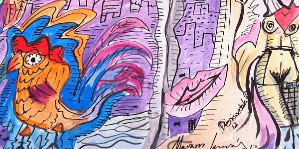 " La obra de Denisse de la P se despliega en formas sencillas, expresando la esencia de su sentir. Mantiene la frescura de trazos claros y precisos, su paleta es lúdica, alegre e impregnada de un gran sentido del humor. Su obra es producto de sus propias experiencias y continua búsqueda de lo espiritual, expresada a través de los símbolos que elije. La obra de Denisse de la P es vital, sencilla, creativa, alegre, versátil, espontánea y natural. Denisse encarna la energía del gallo. Hasta hoy es su principal símbolo. Ataviada de plumas, acompañada del coro "avecino" hace de su andar una experiencia de consciencia plena en el día a día. Cada kikirikí es una alabanza al creador y una invocación a SU presencia en su vida. "